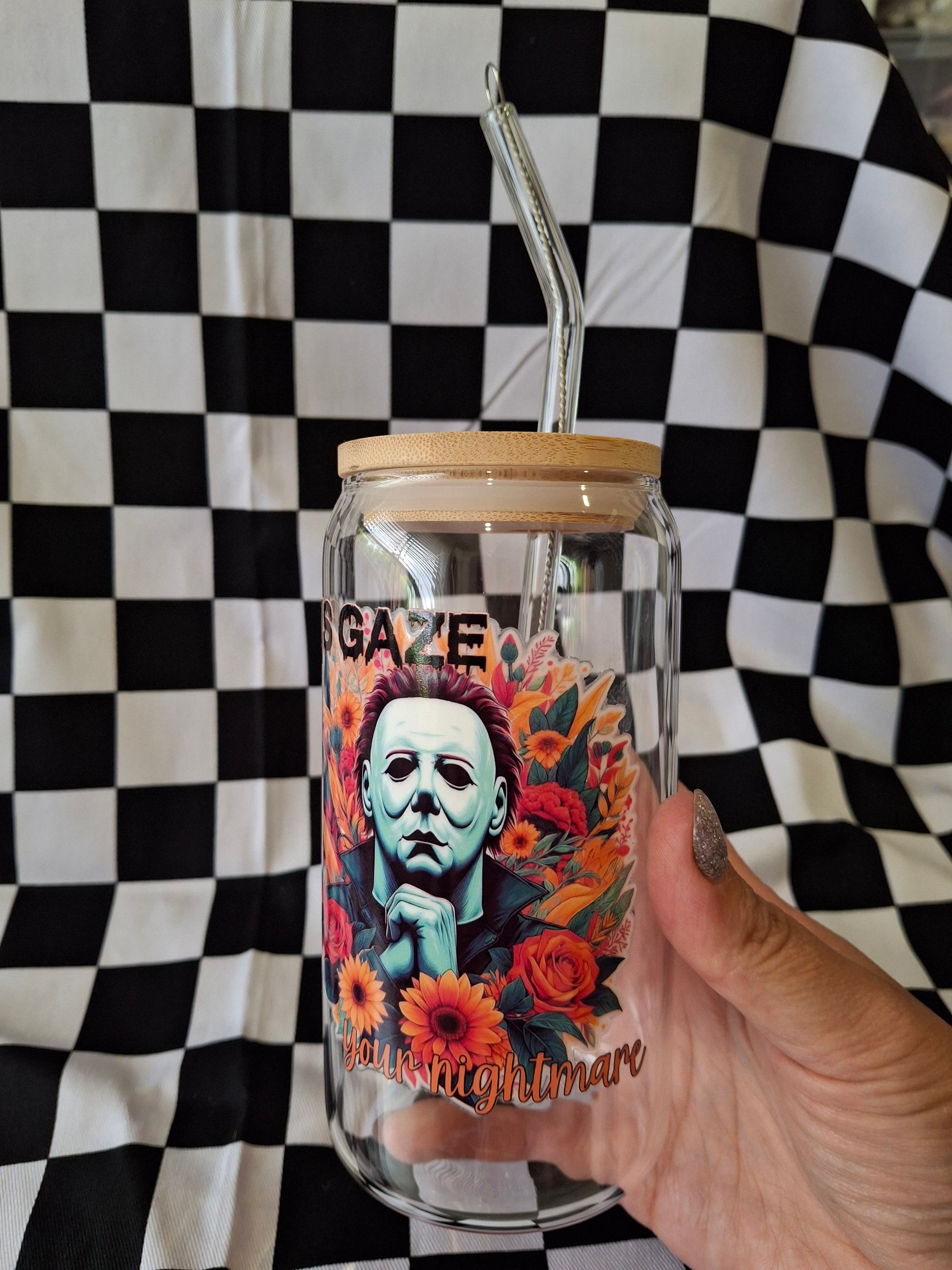 His gaze, your nightmare, Michael Glass Tumbler