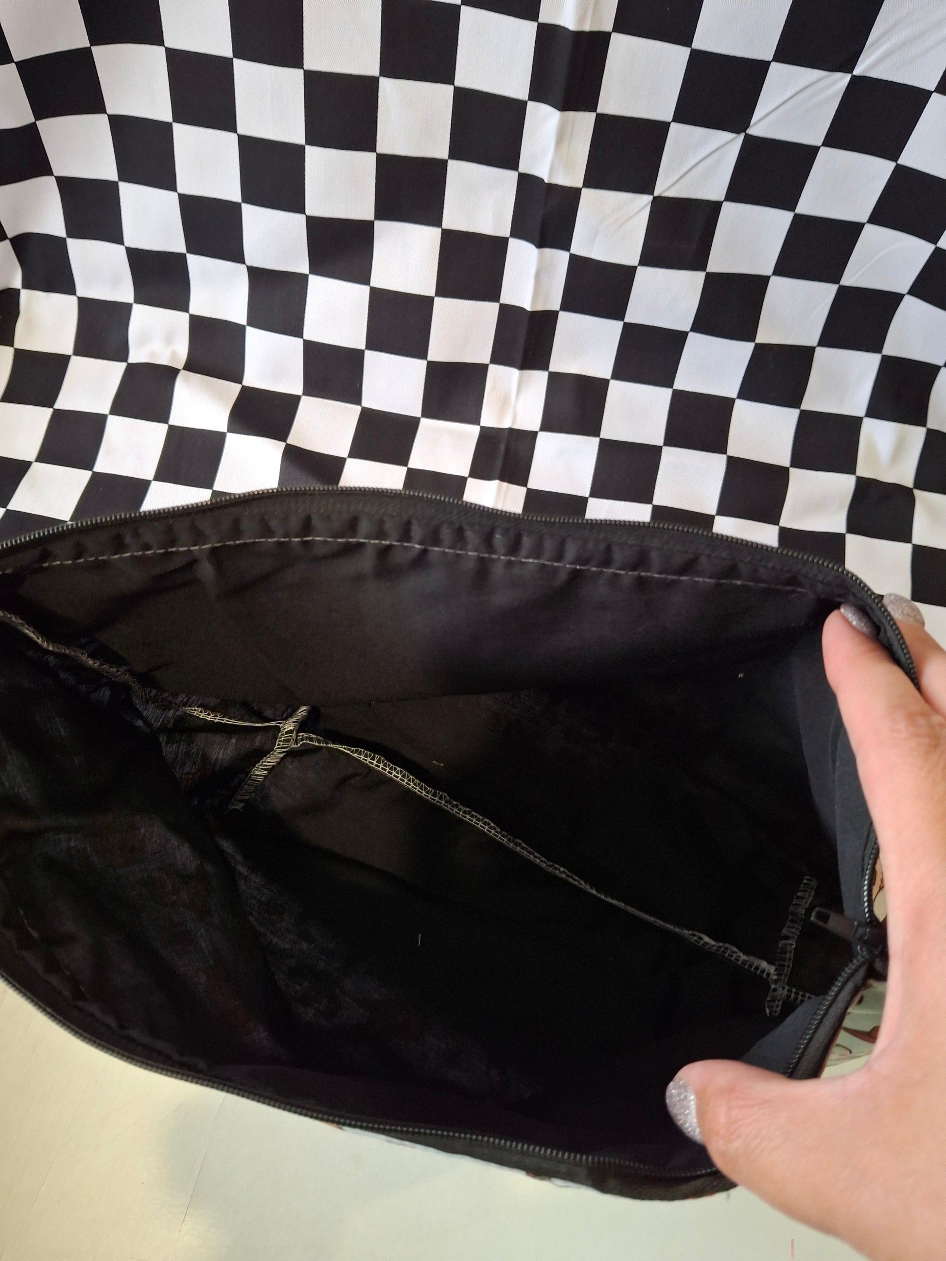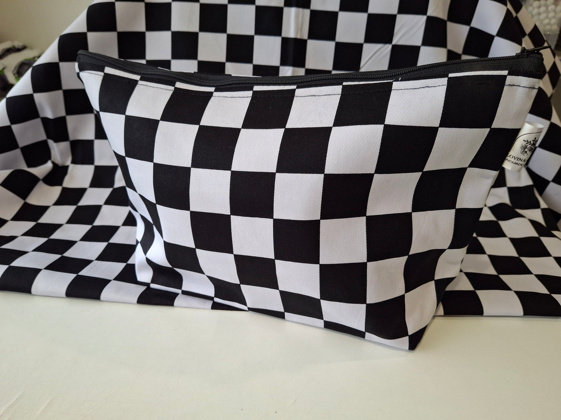 Handmade makeup bag or project bag for craft items. Featuring a square bottom so it will stand up on its own.