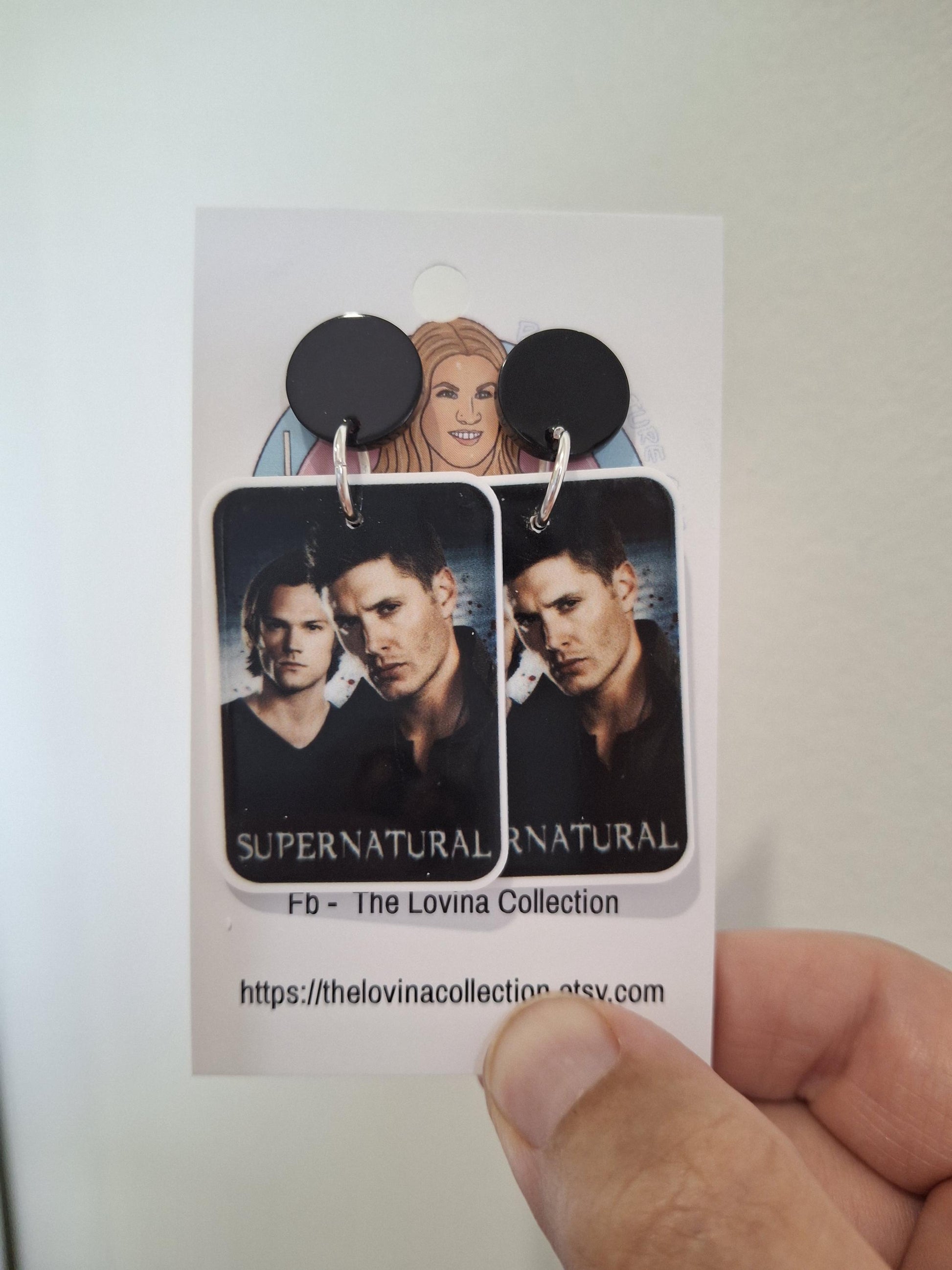 Hand assembled Supernatural tv show inspired dangle earrings.